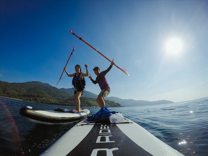 Khi chơi SUP bạn dễ dàng trò chuyện vưới một người bạn chèo bên cạnh, thân thiện với trẻ em vì trẻ em có thể ngồi phía trên cùng bạn một cách an toàn. Đối với những môn thể thao mạo hiểm khác chưa được phổ biến tại Việt Nam như lướt sóng, lượt ván thì đây sẽ là loại hình phù hợp dành cho bạn và người thân.