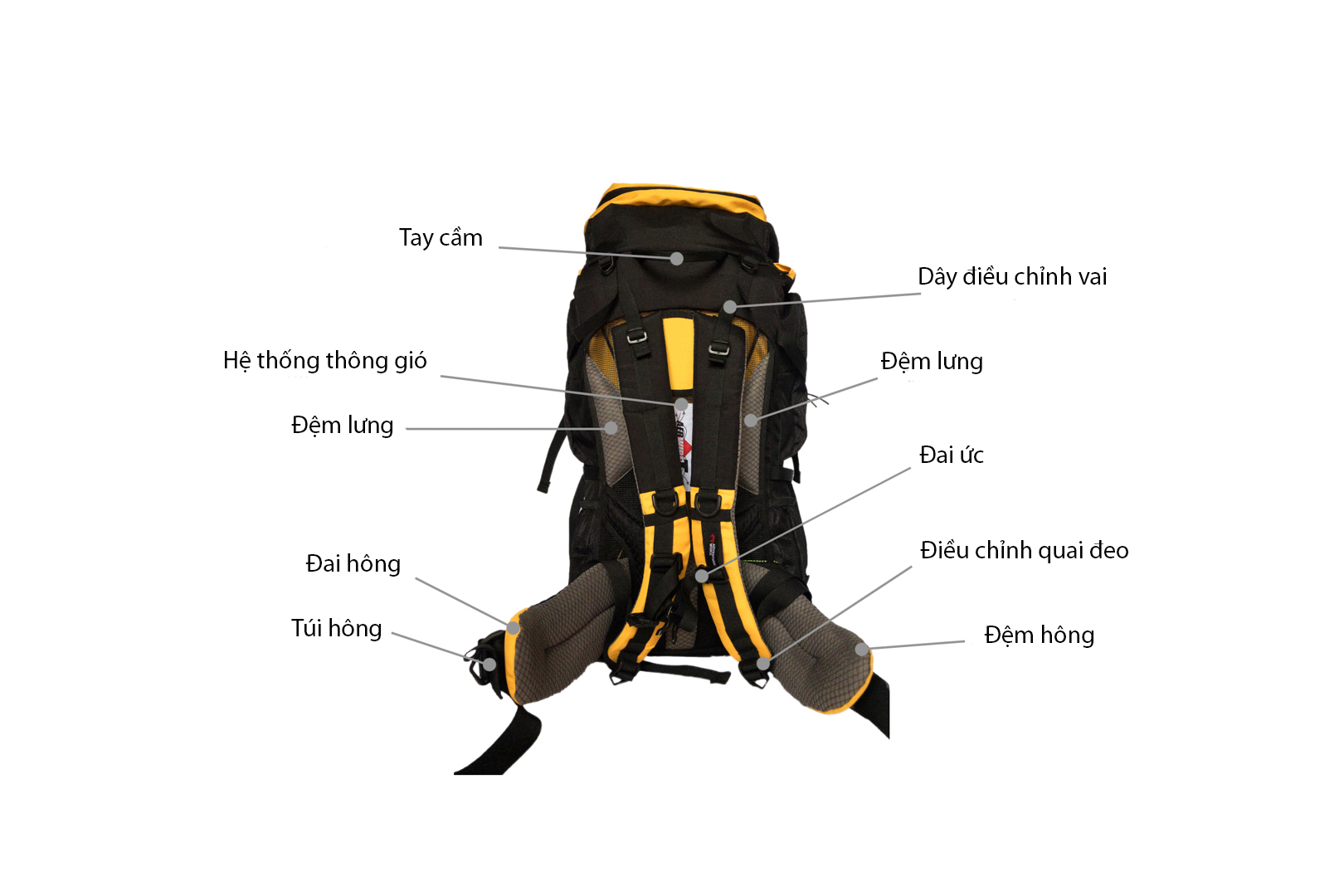 Dây nối đai hông với phần thân của balô giúp ổn định balo với phần hông khi di chuyển.