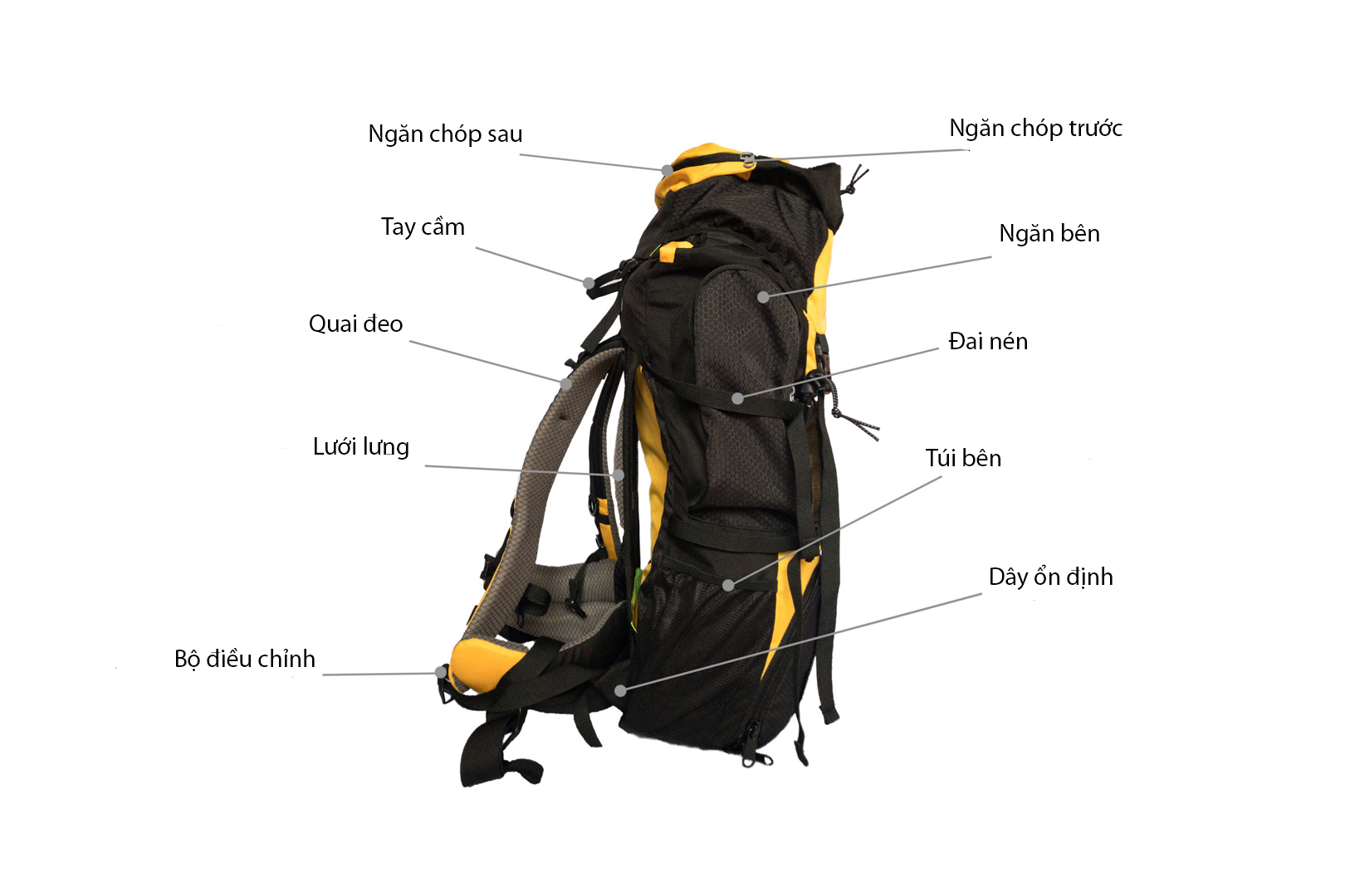 Những người leo núi nghiệp dư thường không đánh giá đúng balo dựa trên những thông số cơ bản cần thiết. Chỉ sau những chuyến đi họ mới nhận thấy những chi tiết và phụ kiện là cần thiết để có thể nhận được những trải nghiệm tốt nhất, hỗ trợ nhiều nhất cho những chuyến đi ấy. Điều đầu tiên, hiểu được cấu tạo của balô là rất quan trọng, việc hiểu cấu tạo của một chiếc balô chuyên dụng sẽ giúp người dùng tối ưu balô dựa trên yêu cầu của từng cá nhân. Dưới đây là các bộ phận chính của một chiếc balô mà hầu hết các balô leo núi đều có.