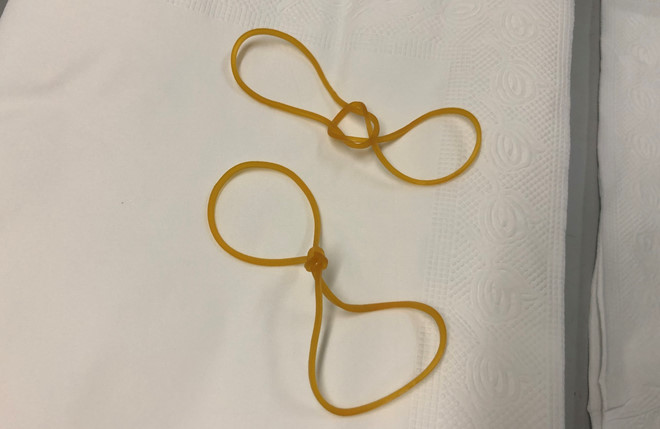 Sử dụng kim bấm cố định sợi thun ở mỗi đầu của chiếc khăn giấy