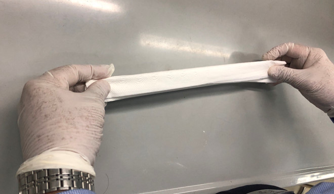 Sau đó trải rộng mặt khăn giấy ra theo chiều dài