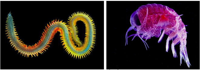 Chúng gồm: Họ Rươi [là một họ giun nhiều tơ (Polychaete), với khoảng 500 loài] - Loài nhuyễn thể hai mảnh vỏ - Các loài ốc biển thuộc lớp chân bụng - Bộ Giáp xác chân khớp (Amphipods) - và đỉa biển (hải sâm).