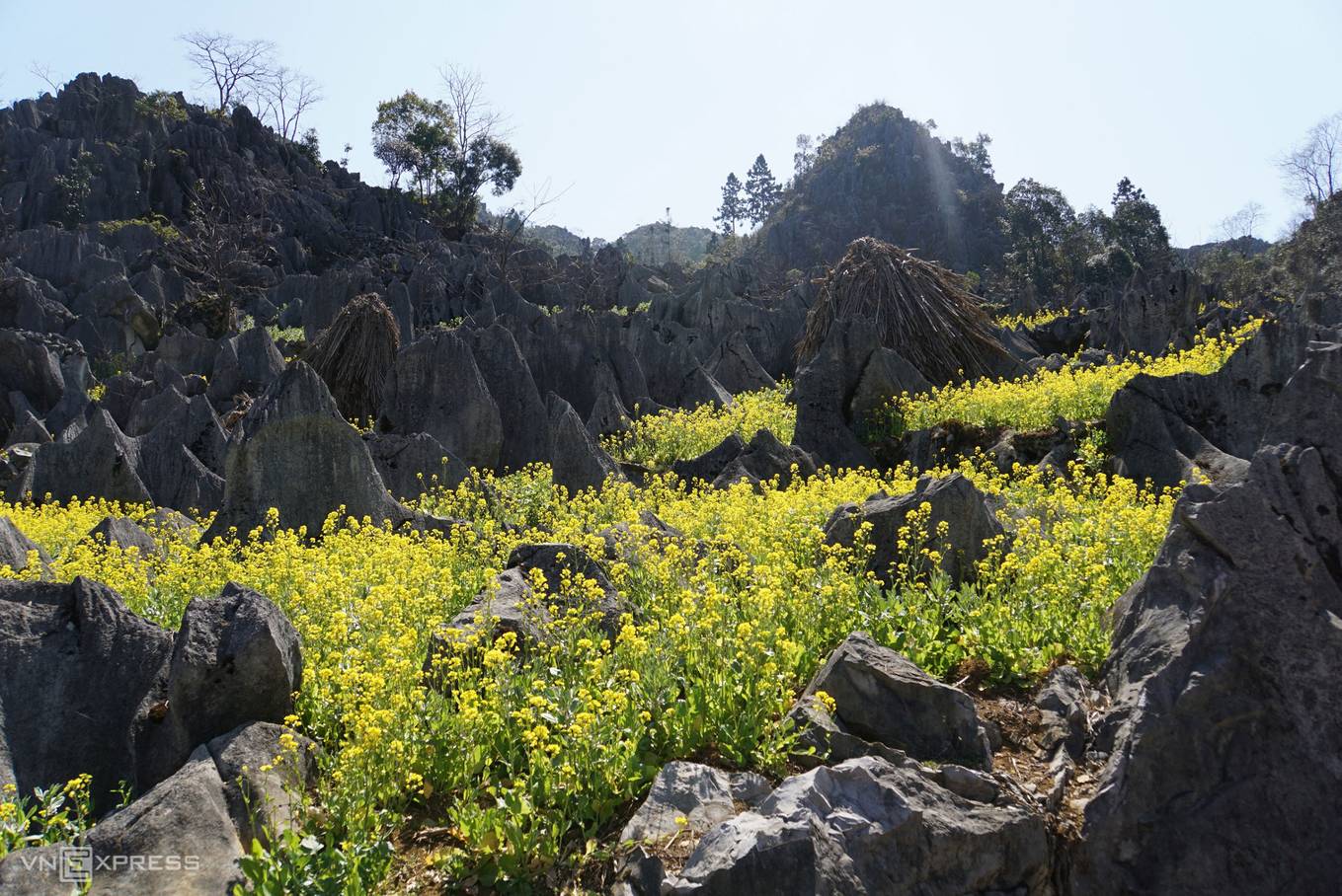 Theo một hướng dẫn viên du lịch, nếu đi Hà Giang năm nay, du khách sẽ được “một phần lời to” bởi ngoài hoa gạo, một số khu vực còn được tô điểm bởi sắc vàng rực rỡ của hoa cải mèo. Du khách có thể tìm thấy những ruộng cải mèo đang rộ hoa ở khu vực dốc Chín Khoanh, xã Phố Cáo và xã Sủng Là (huyện Đồng Văn).