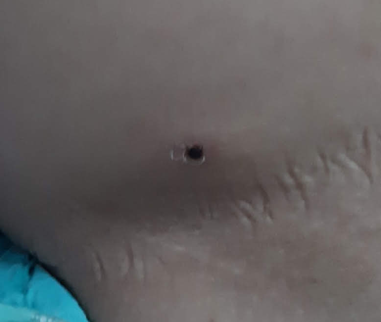 Note: nhìn hình chụp vậy thôi, chứ vết đốt chỉ bằng đầu ống hút bình thường, đường kính vết đốt 4mm thôi."