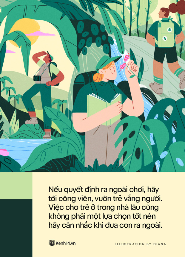 Tuy nguy cơ lây nhiễm của trẻ em là rất nhỏ, không loại trừ khả năng đứa trẻ có thể nhiễm bệnh và lây cho người già trong nhà. Nếu quyết định ra ngoài chơi, hãy tới công viên, vườn trẻ vắng người. Việc cho trẻ ở trong nhà lâu cũng không phải một lựa chọn tốt nên hãy cân nhắc khi đưa con ra ngoài. Trẻ con cũng cần rửa tay sạch sẽ trước khi tiếp xúc với các thành viên gia đình.