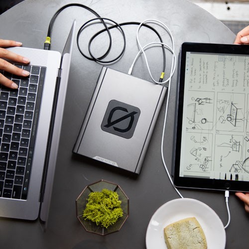 Phía 2 bên hông của pin có 2 khe được tích hợp đi kèm với 2 dây cáp cùng 2 dây cáp khác đi kèm trong hộp, tổng cộng là 4 dây cáp báo gồm: 1 cáp Lightning, 2 cáp USB-C và 1 cáp 2 đầu USB-C. Tuy nhiên chiều dài của chúng khá nhỏ để phục vụ cho việc cất trữ thuận lợi hơn.