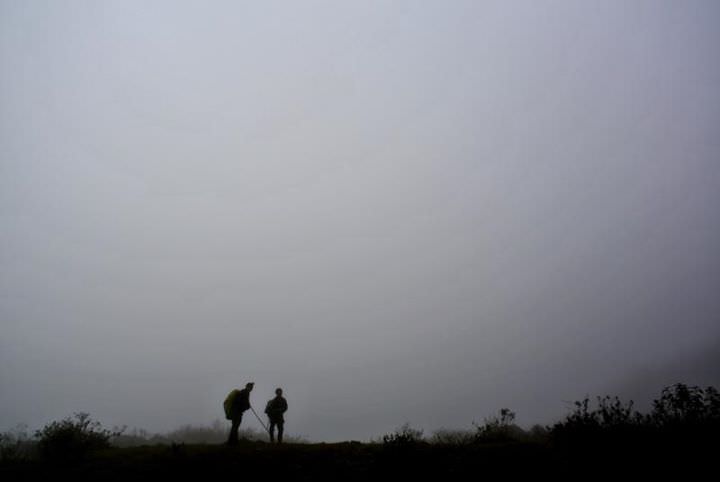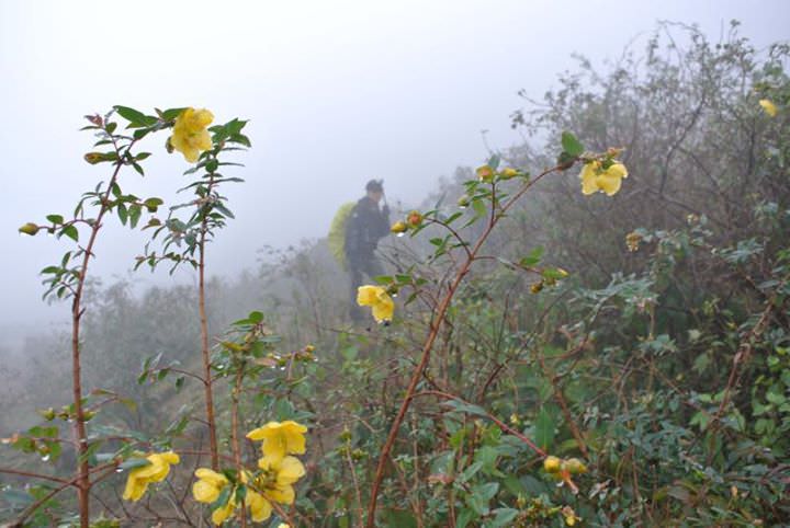Sáng ngày thứ ba, chúng tôi tỉnh dậy giữa sương mù giăng kín, thấy mình đang ở giữa rừng trúc bạt ngàn, nhấp nhô những cành mận mốc thếch và lác đác những cây chè cổ thụ, nhưng sườn bên này dường như không có màu xanh nào ngoài màu xanh của giống trúc lùn. Giống cây báo hiệu địa hình đỉnh núi, nơi gió mùa tràn qua được và chúng buộc phải thích nghi bằng cách hạ thấp độ cao của mình nếu không muốn bị thiên nhiên hạ gục. Bật bếp nấu nước, ở đây đi lấy nước chỉ vài bước chân nhờ cái khe trong vắt róc rách ngay cạnh chỗ dựng lều. Ăn sáng và cafe, tất nhiên là đủ lệ bộ, rồi tiếp tục trek ngược lên theo cái khe nước hôm qua. Càng lên cao cảnh vật càng hùng vĩ, nhưng gió gào rú đập từng vốc mây vào mặt khiến cho tầm nhìn hạn chế. Chuẩn quay sang tôi chán chường - anh ơi hôm nay lại không có mây. Đã hai ngày đi trong không khí ẩm ướt, tôi cũng cảm thấy chán ngắt vì cái khung cảnh mờ ảo hỗn độn này. Không thấy dấu hiệu của biển mây - nỗi ám ảnh khắc khoải của dân leo núi. Hầu như người đam mê leo núi nào cũng mong muốn ít nhất một lần được lặng ngắm bình minh trên đại dương giữa lưng chừng trời.