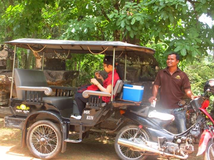 Nhìn thấy vẻ thất vọng cùng sự ảo não, anh Kun hỏi nó có muốn qua chỗ em gái đang ăn lẩu không, hay về khách sạn. Chán chả buồn tiếp chuyện. Nghĩ ngẫm một lúc rồi nói anh ấy chở đi ra chỗ các bạn ăn uống. Thế là anh ấy gọi điện cho bạn tuk tuk đã chở mấy anh chị em đi ăn xem quán đó ở đâu, rồi đưa nó qua. Lúc xuống xe, nhìn vẻ mặt như bị mất ví của nó, anh ấy không quên an ủi, lần sau đi vào dịp lễ hội, nhất định được thấy Angkor Wat lung linh lắm. Và vì anh ấy không giúp nó thực hiện được ước mơ giản dị tối nay nên anh không nhận tiền công. Cảm động quá đi mất, bảo sao Cambodia làm du lịch tốt thế. Cảm giác ấm lòng biết bao nhiêu, chẳng bù ở nhà mình, hễ thấy “chăn” gà được là không nề hà gì cả. Nói đi cũng phải nói lại, nơi nào cũng có người này người nọ, thằng cha Police lúc sáng đúng là con sâu làm rầu nồi canh đấy thôi. Giờ ngồi nghĩ lại mới thấy nó đúng là may mắn gặp được một anh tuk tuk tốt  bụng và nhiệt tình như Mr. Kun. Mấy ngày qua, chúng nó vẫn cười nói rằng mặc dù đi xe anh Kun, biết là chẳng rẻ hơn, nếu mà đi tuk tuk tự do, nhưng mà cảm giác thấy thật thoải mái. Một quãng đường xa xôi như thế, không thể không trả anh ấy tiền xăng được. Ngại ngùng chìa tiền trả anh ấy, nói mấy câu cảm ơn rối rít, kèm thêm vẻ mặt năn nỉ, cuối cùng anh ấy cũng cầm chút tiền công nho nhỏ cho nó bớt áy náy.