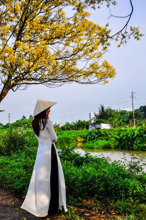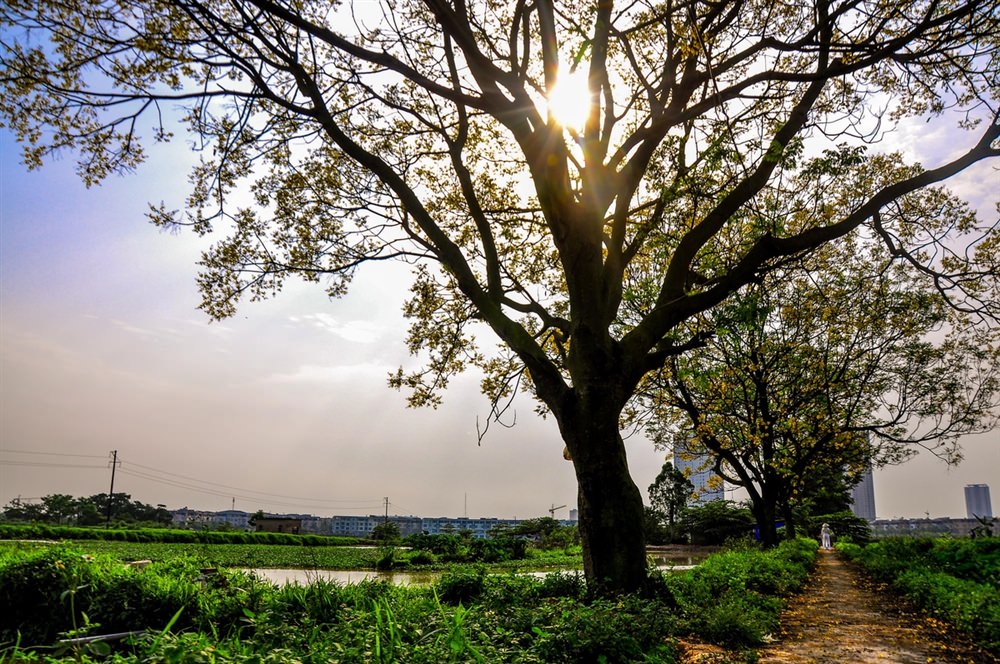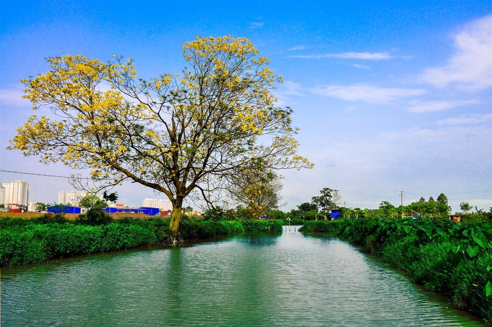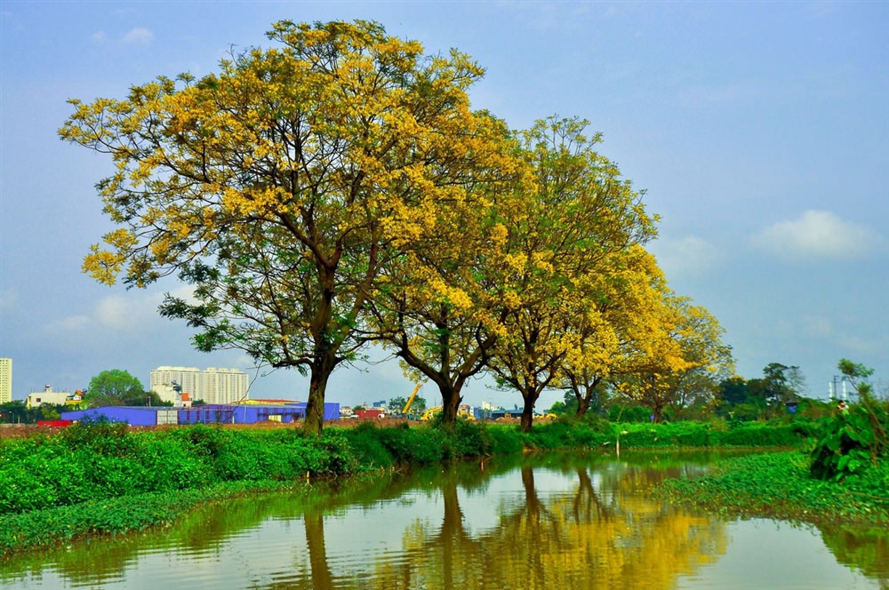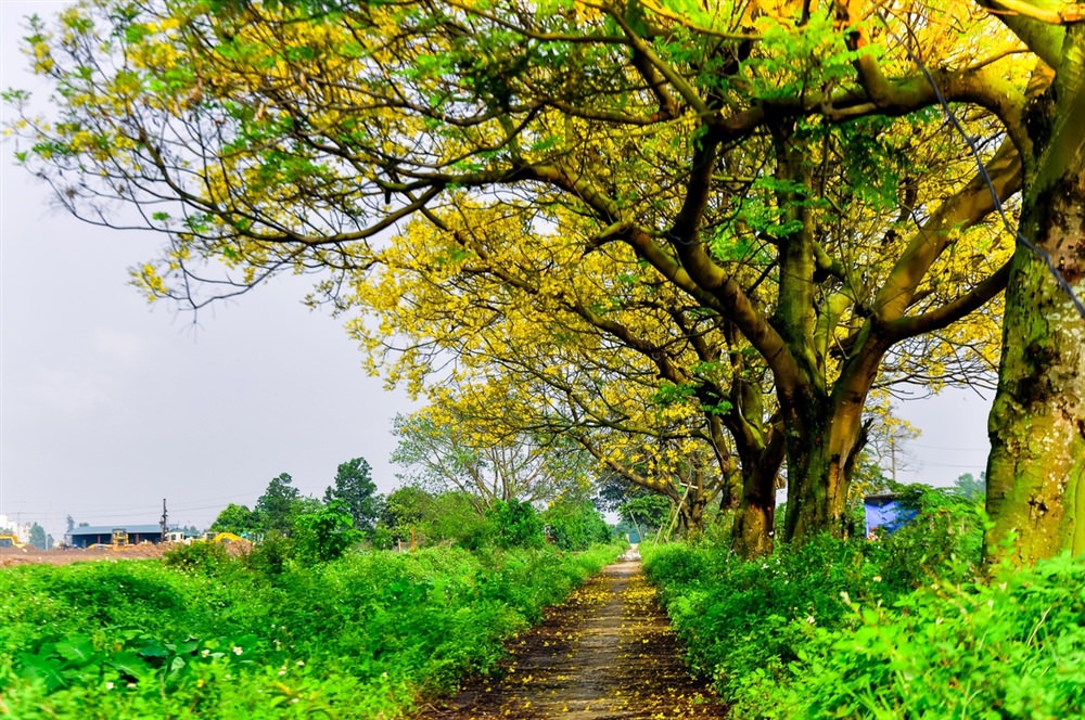 Con đường hoa điệp rực vàng ở ngoại ô Hà Nội