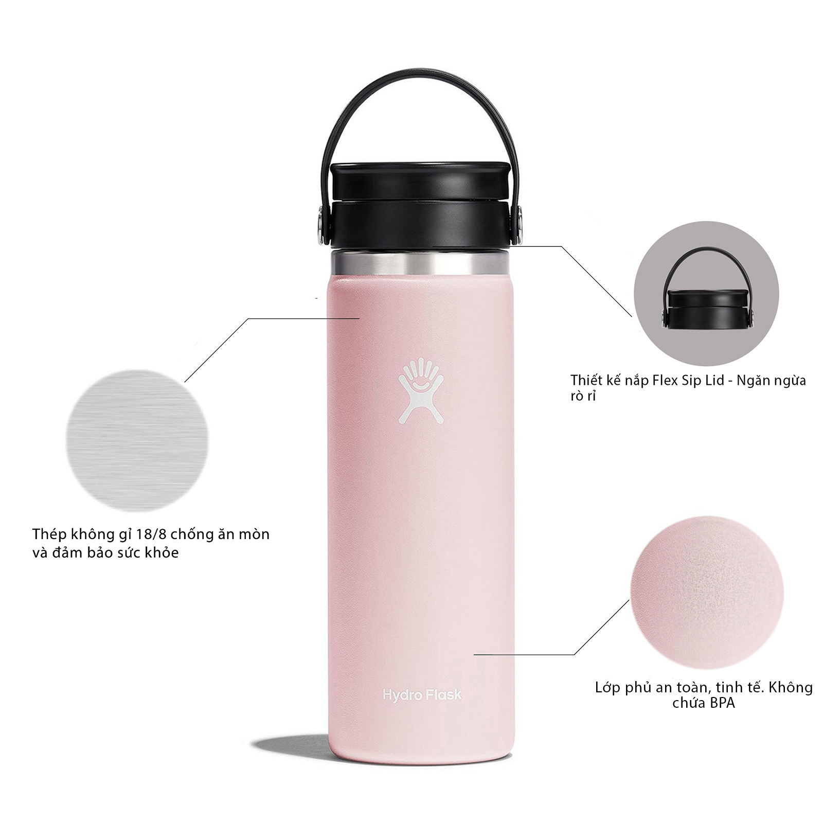 Bình nước giữ nhiệt 591ml Hydro Flask Wide Flex Sip Lid 20 OZ W20BCX là lựa chọn hoàn hảo cho những ai yêu thích đồ uống mang đi. Với thiết kế tiện dụng, bạn có thể thưởng thức đồ uống ở tất cả mọi nơi. Công nghệ cách nhiệt chân không hai lớp TempShield®️ giúp giữ lạnh lên đến 24 giờ và giữ nóng lên đến 12 giờ, đảm bảo hương vị luôn tinh khiết và không bị ám mùi.