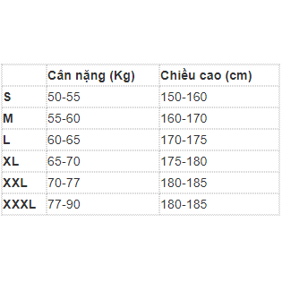*Nếu mặc áo giáp, đồ bảo hộ bên trong thì chọn lớn hơn một size