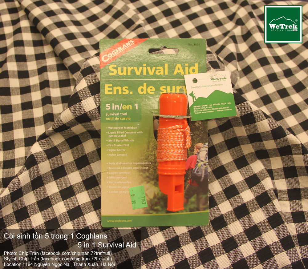 Còi sinh tồn 5 trong 1 Coghlans 5 in 1 Survival Aid bao gồm: Còi, hộp diêm chống nước, la bàn, tấm đánh lửa và một dây nylon.Nhỏ gọn nhưng vô cùng hữu ích mang theo bên mình khi đi phượt, cắm trại, dã ngoại, du lịch.