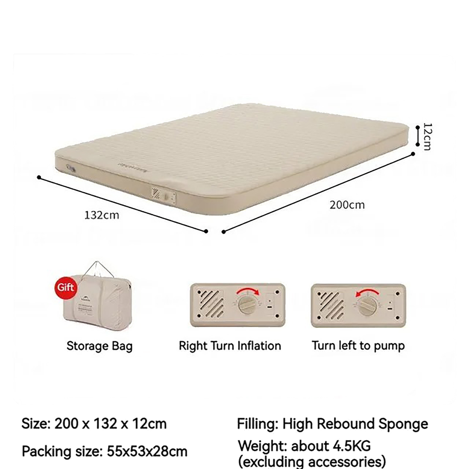 Sản phẩm bao gồm | Đệm đôi tự bơm hơi Naturehike Automatische Opblaasbare Matras CNK2300WS011 |