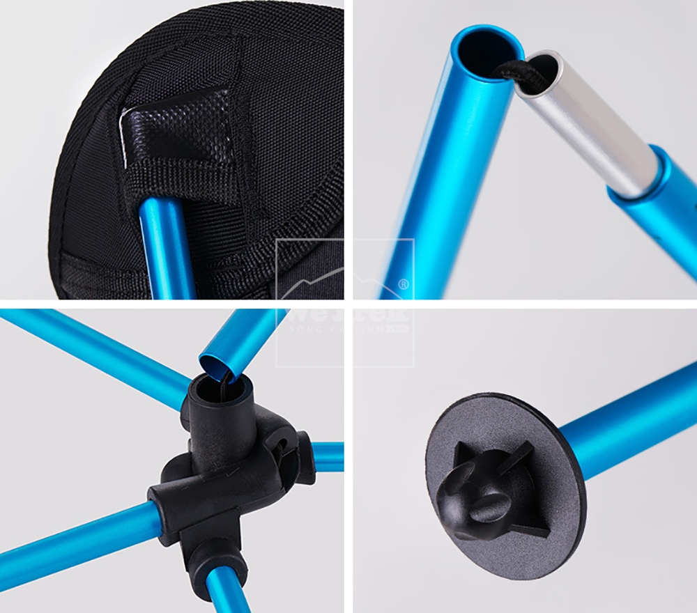 Ghế Naturehike được làm từ hợp kim nhôm 7076 chắc chắn, không bị oxi hóa hay gỉ sét. Chất liệu này không chỉ giúp giảm trọng lượng của sản phẩm mà còn đảm bảo tính bền vững và độ bền cao. Những vị trí chịu lực chủ yếu của bộ khung được sử dụng đinh tán chắc chắn, hạn chế tối đa khả năng hư hỏng sau thời gian dài sử dụng. Vị trí khớp nối cũng được tính toán kỹ lưỡng và lắp ráp bằng máy móc, đảm bảo sự ổn định và an toàn khi sử dụng.