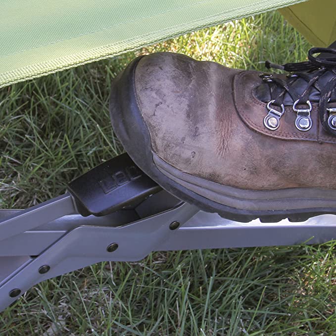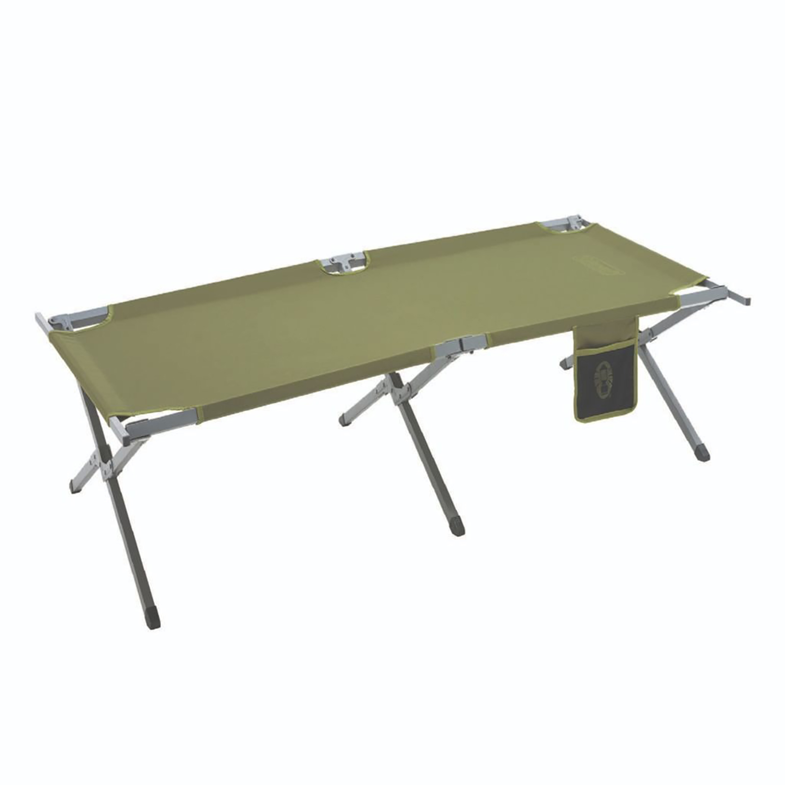 Giường gấp gọn dã chiến với khung thép và chất liệu vải chắc chắn, chịu được trọng lượng lên tới 140kg.