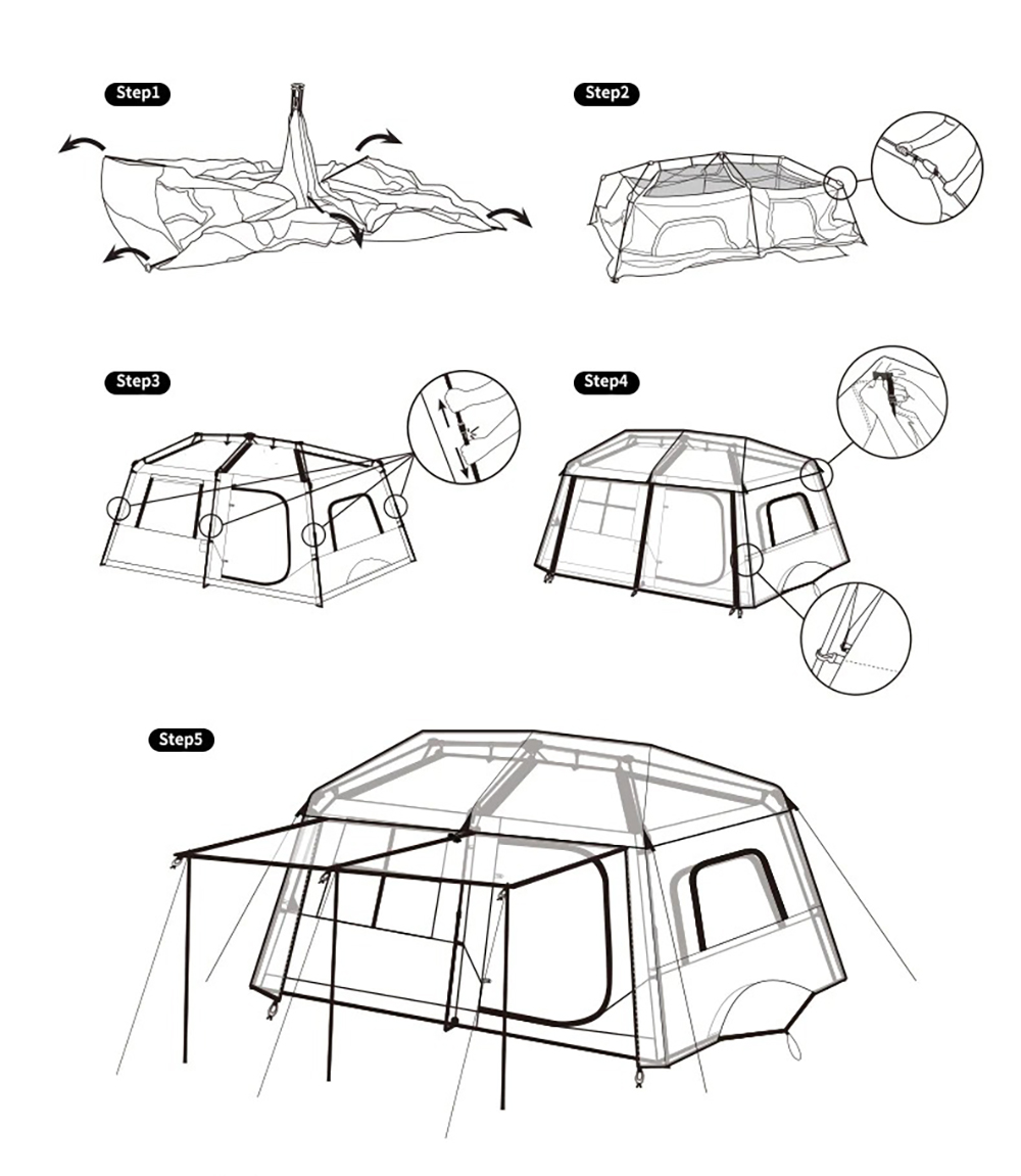 Dòng lều Naturehike Glamping Village, một sản phẩm lều mang tới hình thức của một căn nhà nhỏ. Không gian đủ dùng cho 01 gia đình từ 3 – 4 người hoặc có thể làm lều trung tâm cho rất đông người.