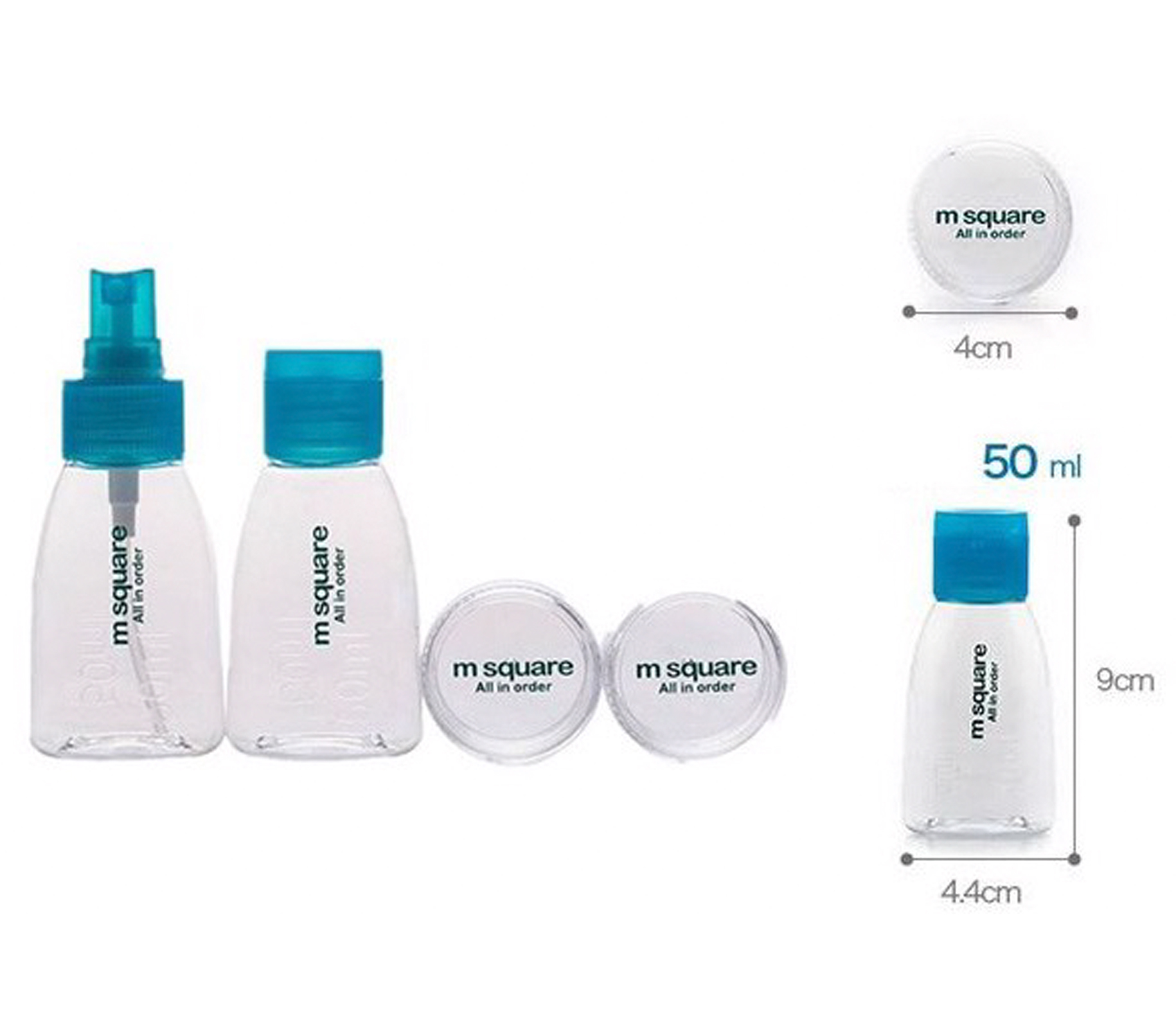 Bộ chiết mỹ phẩm đi du lịch chính hãng Msquare với dung thích 50ml là bộ đồ đi du lịch thích hợp khi bạn cần đựng không nhiều và đi ngắn ngày. Kích thước nhỏ gọn dễ dàng để bạn đựng trong túi đi biển, túi đựng đồ du lịch cá nhân mỹ phẩm của mình.