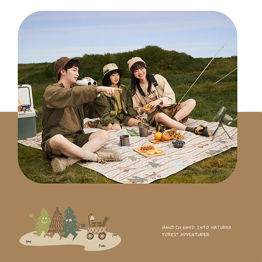 Thảm dã ngoại Naturehike Glamping CNH22DZ004. Với hoạ hình “”Hòa mình vào thiên nhiên và trở thành nhà thám hiểm trong rừng”, Tone màu vàng nâu siêu sạch. Hình thức vô cùng thời trang cho các gia đình mang đi cắm trại, dã ngoại.