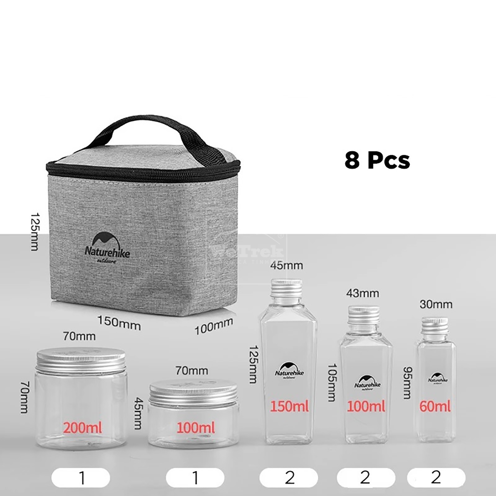 | Bao gồm | 1 hộp 200ml, 1 hộp 100ml, 2 lọ 150ml, 2 lọ 100ml, 2 lọ 60ml |