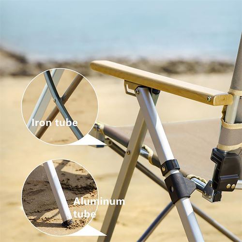 Khung ghế được làm từ chất liệu nhôm bền bỉ, chắc chắn. Với trọng lượng nhẹ, ghế dễ dàng di chuyển và mang theo người bằng xe máy, ô tô hoặc các phương tiện khác. Mỗi thanh của khung có kích thước lên tới 1.7 x 2.6 cm, đảm bảo độ chắc chắn và có thể chịu được sức nặng của người dùng lên tới 130kg.