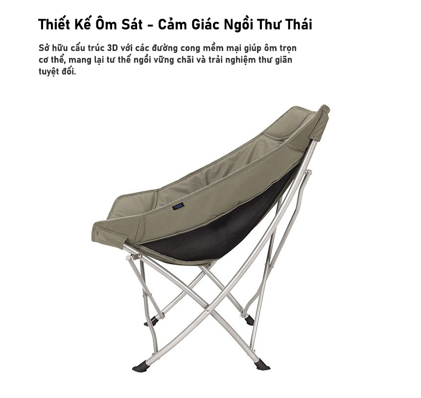 Sở hữu bộ khung hợp kim siêu bền (thường là Duralumin hoặc thép chịu lực cao cấp tùy phiên bản), ghế có khả năng chịu tải trọng lên tới 120kg. Kết cấu khung chữ X gia cố sự ổn định, giúp ghế đứng vững trên nhiều địa hình gồ ghề mà không lo rung lắc.