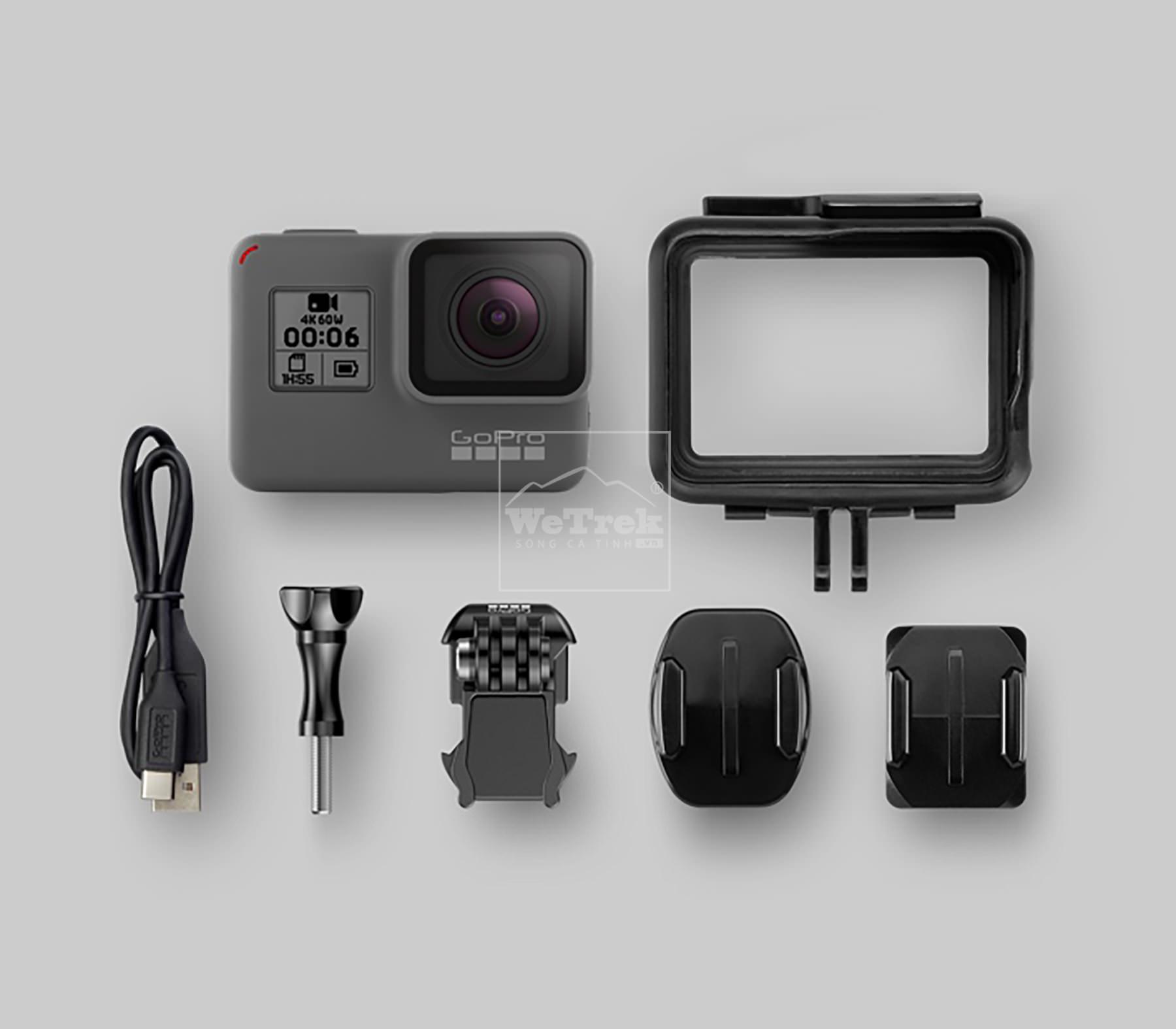 Sản phẩm bao gồm | 1x Máy quay GoPro HERO6 Black 1x Pin sạc tháo rời 1x Khung máy 1x Móc nối Mounting Buckle 1x Miếng dán cong 1x Miếng dán phẳng 1x Dây cáp USB Type-C |