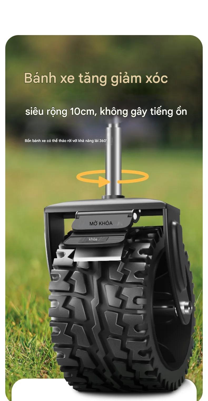 Tay cầm linh hoạt có thể kéo dài hoặc thu ngắn hay điều chỉnh chế độ thành kéo hoặc đẩy, dễ dàng điều chỉnh phù hợp với người sử dụng.