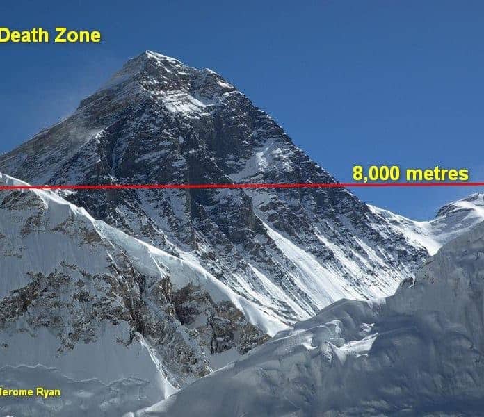 Ở độ cao trên 8000 mét, chỉ có khoảng một phần ba lượng oxy so với mực nước biển. Lượng oxy này không đủ cho con người để thở, đó là lý do tại sao họ gọi đây là khu vực chết.