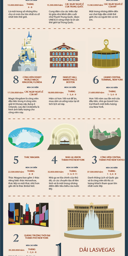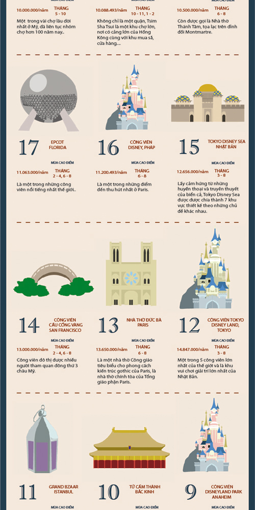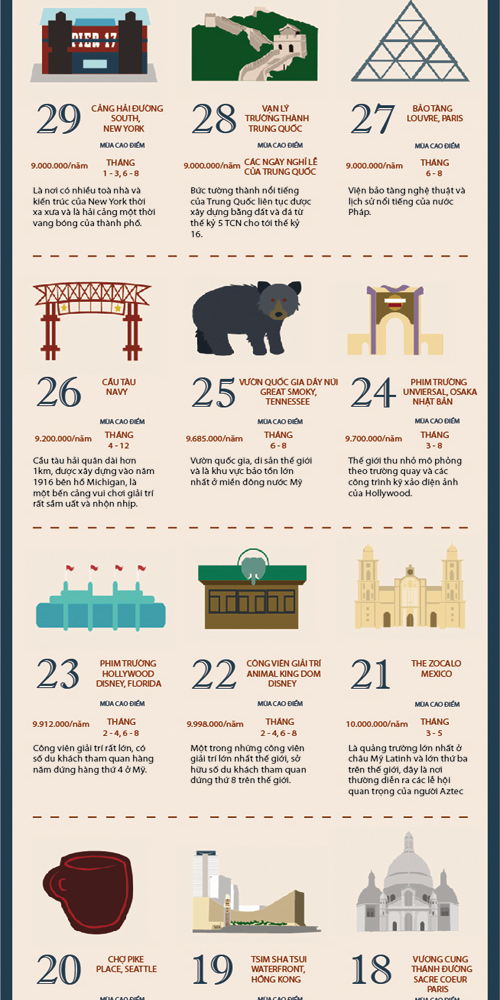 [Infographic] 50 điểm đến hút khách du lịch nhất thế giới