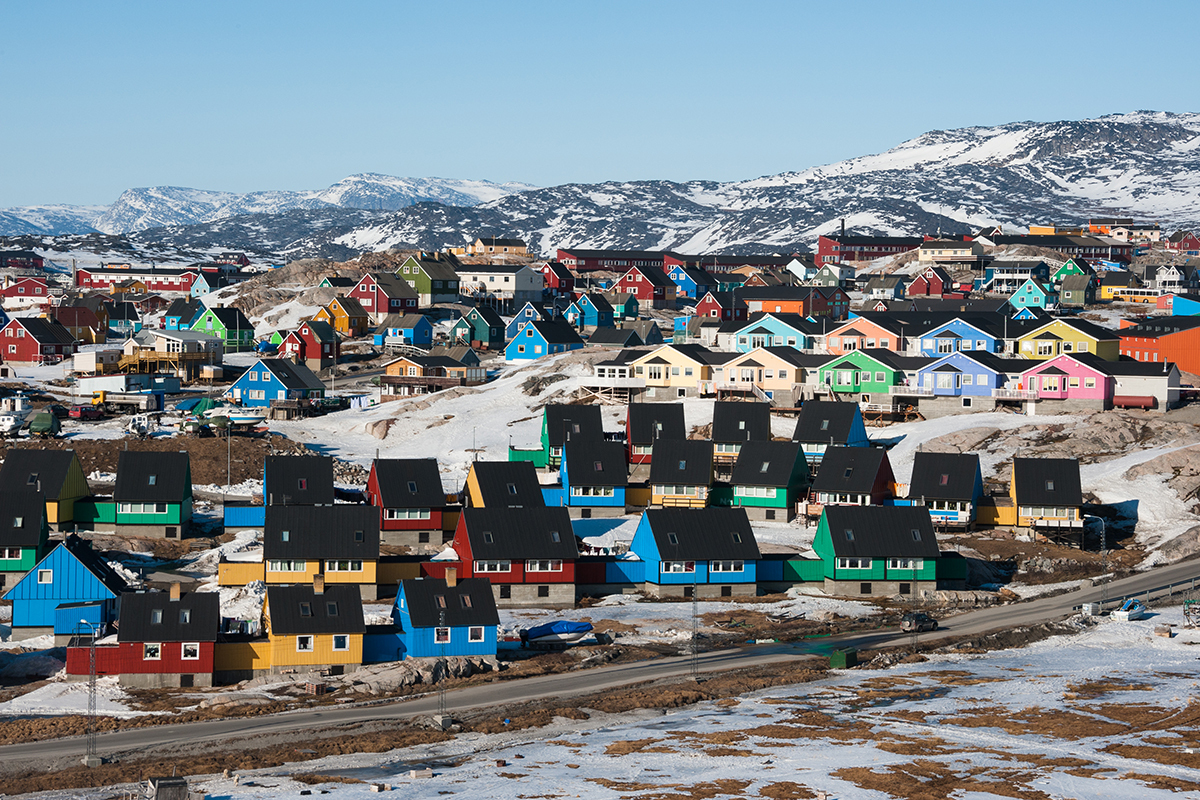 Đảo quốc Greenland gần Bắc cực từ lâu đã nổi tiếng với những ngôi nhà “cầu vồng trong tuyết” độc nhất vô nhị trên thế giới. Chúng hình thành từ thế kỷ 18 với mục đích ban đầu nhằm giúp người dân phân biệt được các công trình khác nhau khi chưa có tên đường và số nhà.