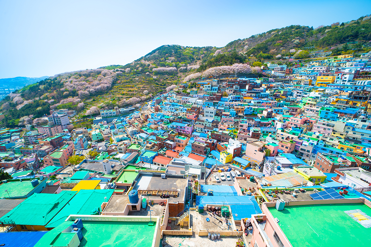 Ngôi làng nhiều màu sắc này tọa lạc tại thành phố Busan, nép mình bên một sườn đồi thơ mộng. Các bức tường nơi đây đều được trang trí những bức tranh rực rỡ, đẹp như cổ tích, từ ban công đến hàng rào, hay các tác phẩm điêu khắc, quán cà phê nhỏ xinh.