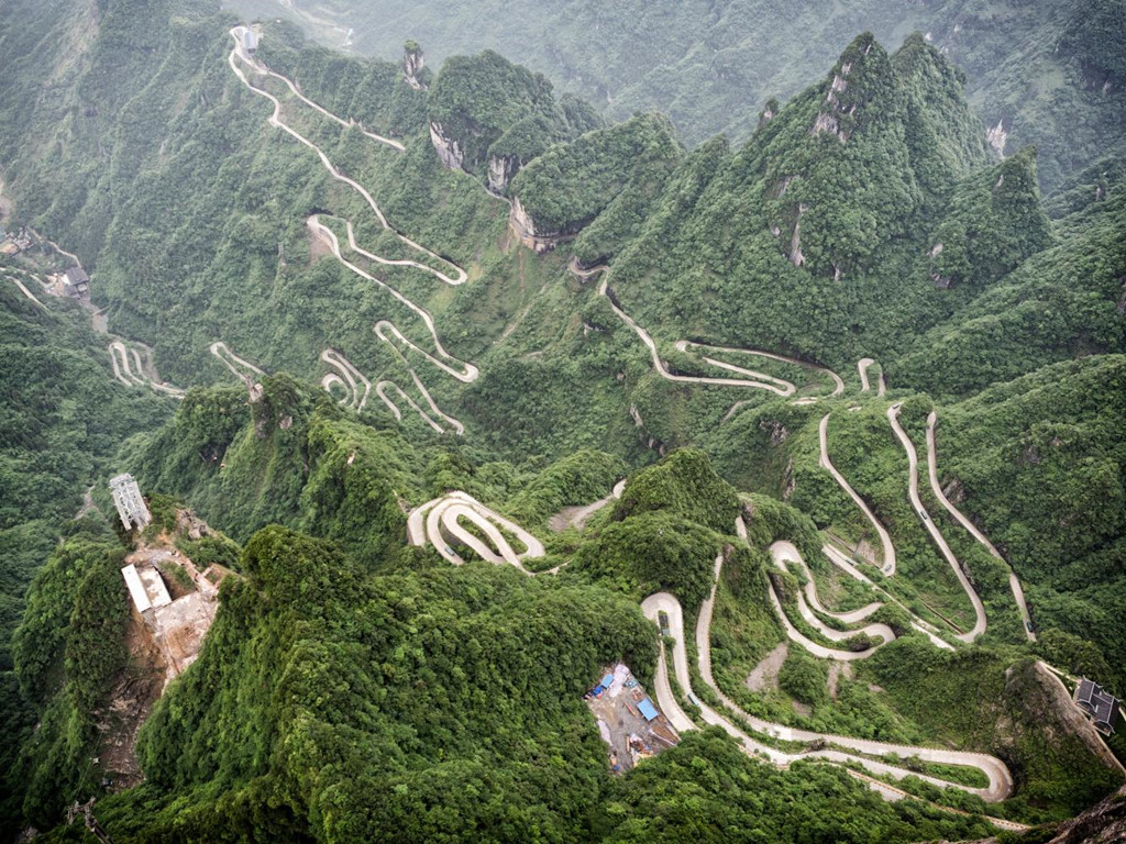 Thiên Môn Sơn (Trung Quốc) là một con đường dài 10 km, có tới 99 khúc cua với nhiều góc chết. Chênh lệch chiều cao giữa điểm đầu và điểm cuối Thiên Môn Sơn lên tới 1.100 m. Nơi cao nhất của con đường là 1.300 m so với mực nước biển. Đi hết con đường, vượt qua 999 bậc thang, du khách sẽ đặt chân đến “Cổng trời”. Ảnh: Klook.