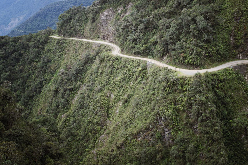 Yungas (Bolivia) là một trong nững con đường cao tốc nguy hiểm nhất hành tinh, được gắn với danh "tử thần". Theo thống kê, 200-300 người đã bỏ mạng trên con đường này mỗi năm. Yungas nối từ rừng Amazon ở miền Bắc tới thủ đô của Bolivia. Con đường chỉ rộng 3,6 m, một bên là núi đá, phía kia là vực sâu 600 m. Ảnh: Matador Network.