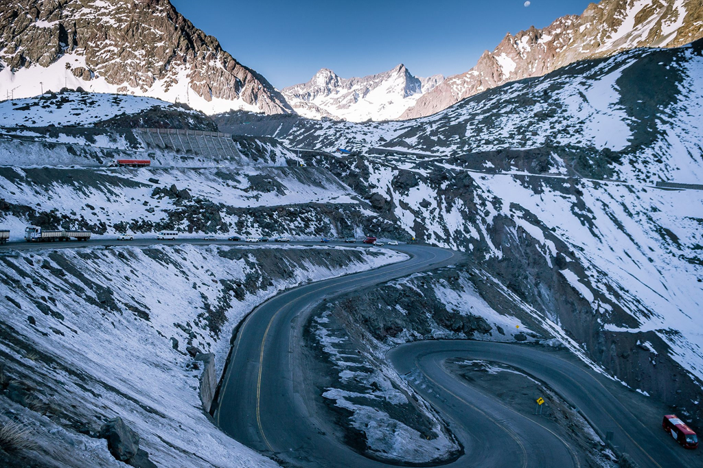 Paso de los Caracoles (Chile) còn được biết đến với tên gọi "đèo con sên" vì những đoạn đường uốn lượn như vân ốc. Đây là con đường có độ cao khoảng 800 m so với mực nước biển, dẫn đến biên giới Argentina. Con đèo này đặc biệt nguy hiểm vào mùa đông khi thường xuyên bị băng tuyết bao phủ. Ảnh: Pinterest.