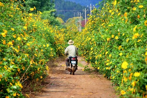 Du khách cần đi vào các xã, huyện cách Đà Lạt khoảng 40 km để ngắm hoa nở vàng rực. Ảnh: Thanh Tuyết.