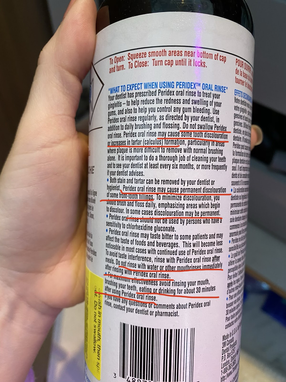 Cũng xin lưu ý thêm: Ở một số nước như Canada và Mỹ, chlorhexidine súc miệng thuộc nhóm cần kê đơn. Vì cũng như mọi loại thuốc, nó có tác dụng phụ, chống chỉ định và chỉ nên sử dụng khi có chỉ định phù hợp.