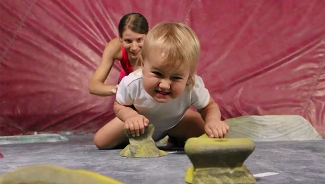 Một bé gái ở Mỹ khiến mọi người ngạc nhiên khi mới 20 tháng tuổi nhưng đã có thể leo núi trong nhà thành thạo. Bé biết trèo trước khi biết đi.