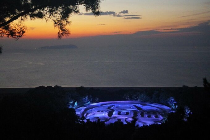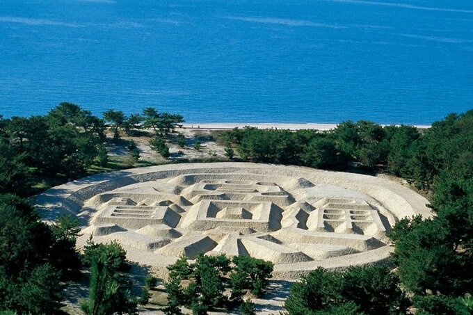 Một số người tin rằng trong Thế Chiến II, quân đội Mỹ đã nghi bức tranh cát này là một pháo đài bí mật và cử lính tới do thám nhiều lần. Ảnh: Shikoku Tourism.