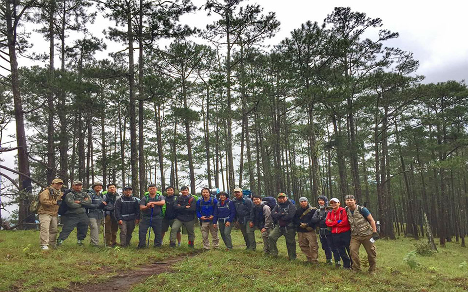 Anh Tâm (đứng thứ tám từ trái qua) trong chuyến đi vào Vườn quốc gia Bidoup (Lâm Đồng). Ảnh: NVCC