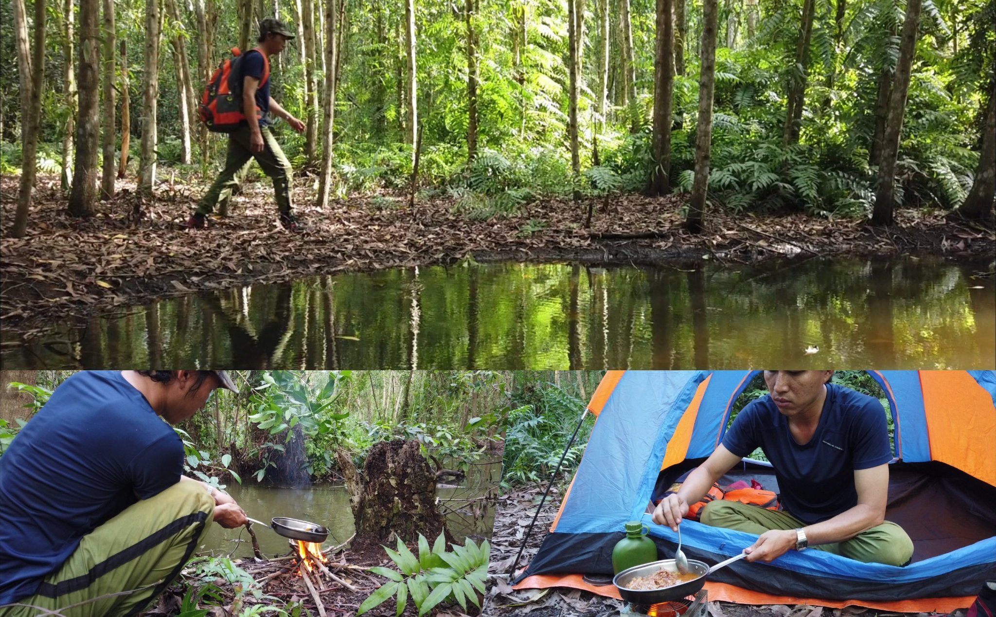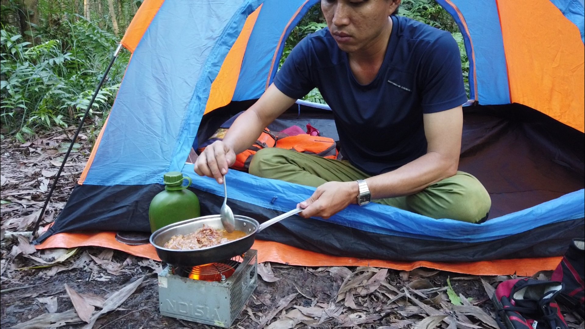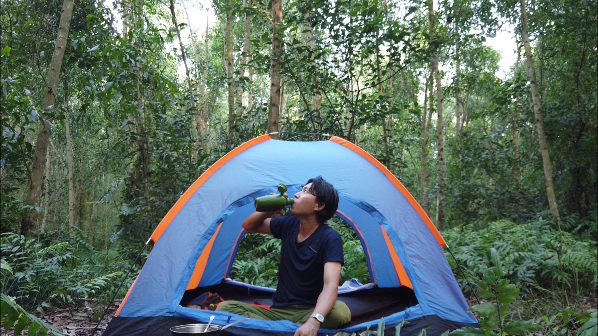 Cắm trại sinh tồn là dạng cắm trại mà chỉ mang theo những vật dụng sinh tồn tối thiểu như lều, dao, đánh lửa, chảo dã chiến, áo mưa... Mình đang thực hành bushcraft camping, một dạng cắm trại bán sinh tồn. Về đám lửa trong hình, sau khi luộc ốc xong mình đã dùng nước dập tắt nó và khu vực xung quanh, đây là nguyên tắc cơ bản khi đi rừng.