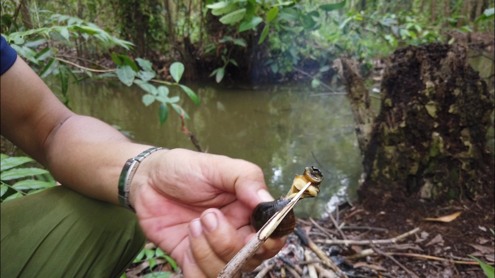 Cây lễ ốc cũng được vót từ cây khô tại đó. Thịt ốc ăn cũng như ốc ngoài chợ thôi, mình chỉ ăn phần đầu và bỏ trứng.