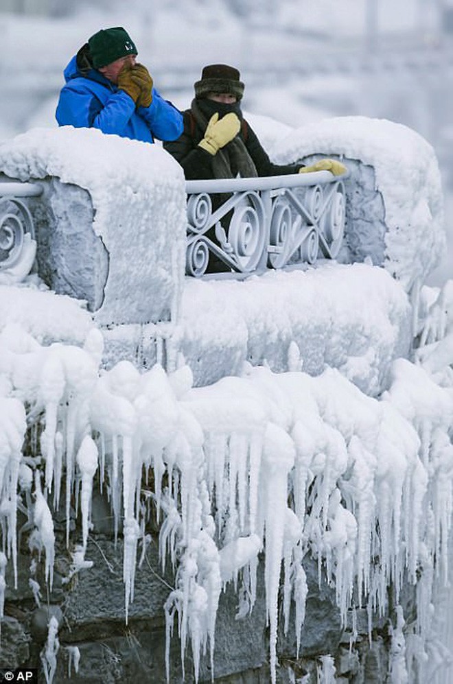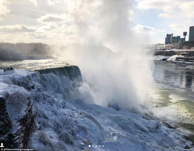 Theo Daily Mail đưa tin, một phần thác nước Niagara đã đóng băng khi thời tiết giá lạnh tràn qua miền bắc nước Mỹ, biến nhiều khu vực ngập tràn trong băng tuyết.