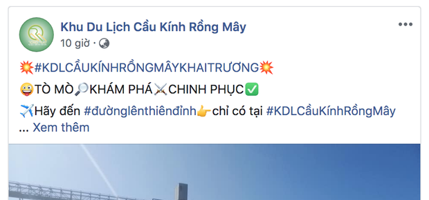 Cụ thể, trên trang fanpage của khu du lịch Cầu kính Rồng Mây đã chia sẻ các thông tin cùng hình ảnh liên quan: