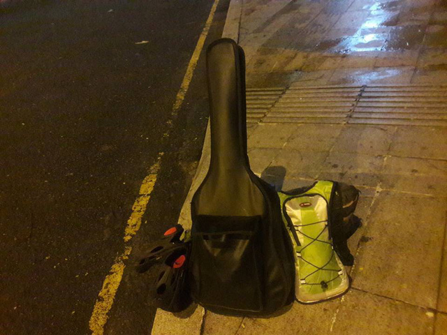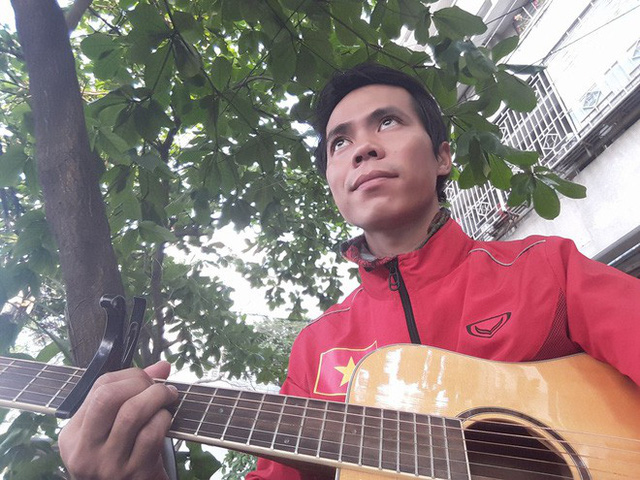 Anh Hà kiếm tiền bằng chiếc đàn guitar.