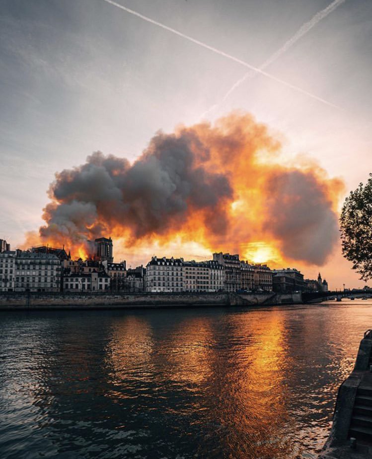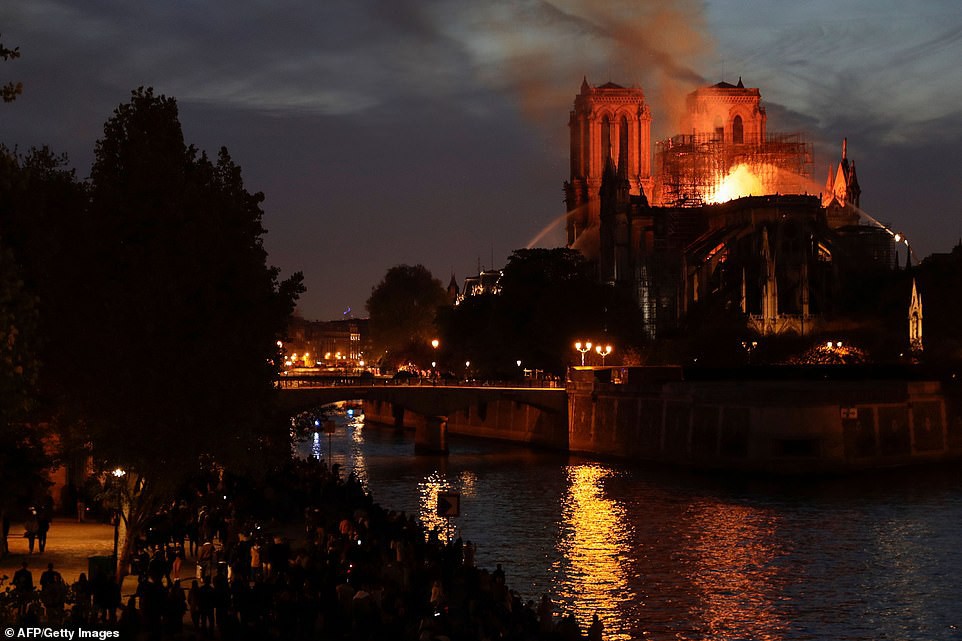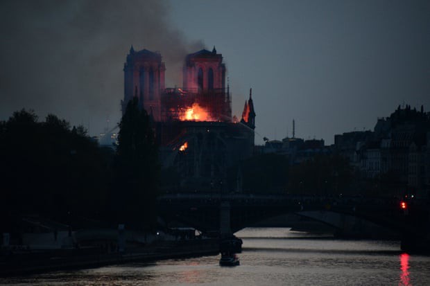 Nhà thờ Đức Bà cháy lớn trước sự bàng hoàng của người dân Paris.