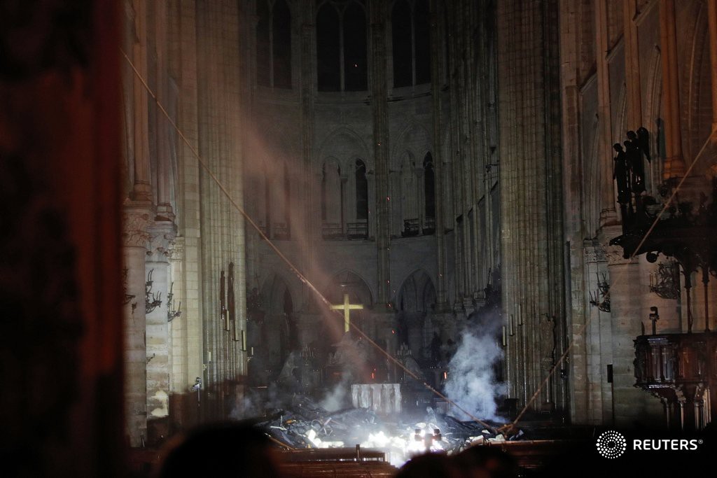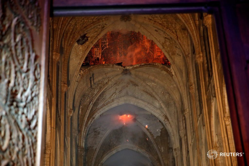 Ngọn lửa tàn phá bên trong Thánh đường. Ảnh: Reuters