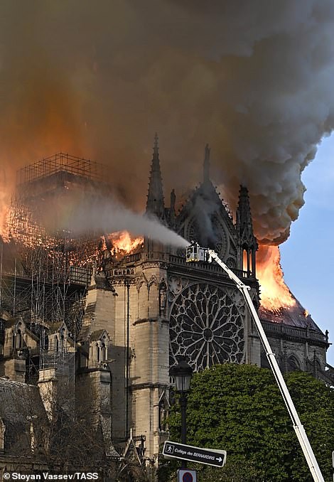Bên cạnh đó, Cảnh sát trưởng Pháp đã cảnh báo ngọn lửa kinh khủng đang tàn phá nhà thờ Đức Bà nổi tiếng thế giới vào tối nay có thể sẽ "không thể dừng lại". Một quan chức của Bộ Nội vụ Pháp thì cho biết "không chắc chắn" về việc có thể cứu được nhà thờ sau khi ngọn bùng phát quá dữ dội khiến cho một phần mái nhà bị sập vào tối nay (theo giờ địa phương).