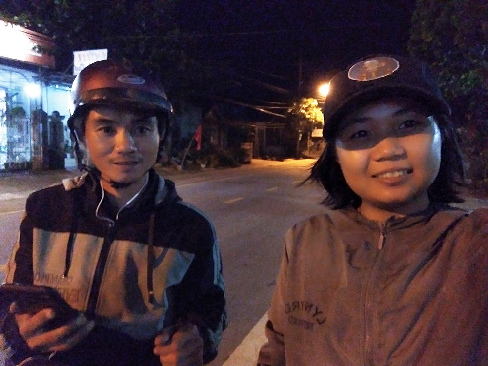 ‘Trời đã tối, tôi tính vào nhà dân xin ở. Hầu hết người dân ở đây rất khổ, nhà nhỏ, cả gia đình dường như có một chỗ ngủ, nhà tắm không có. Tôi nghĩ, nếu mình vào xin ở thì tối ngủ ở đâu, tắm thế nào. Tôi quyết định đi tiếp dù rất mệt, hai chân như rã rời’, Hân nhớ lại.