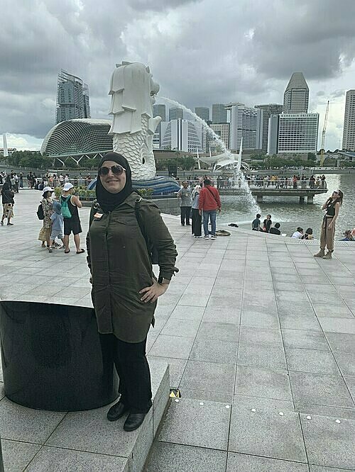 Minkara chụp hình lưu niệm khi dừng chân trong hành trình ở Singapore. Ảnh: Mona Minkara.