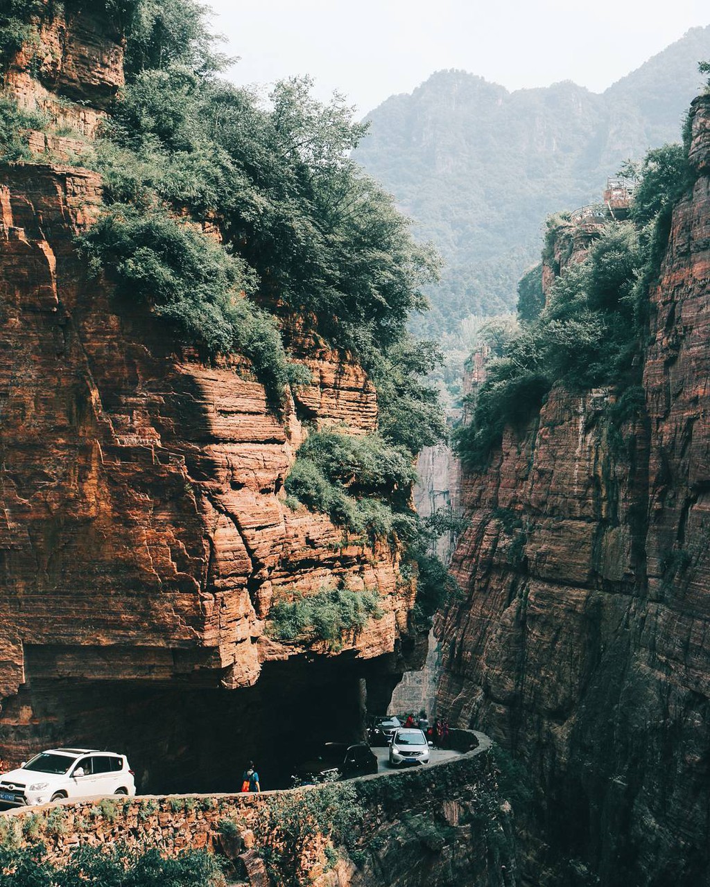 Nằm sâu trong dãy núi Thái Hành Sơn, ngôi làng nhỏ Quách Lượng gần như bị cô lập hoàn toàn với phần còn lại của thế giới. Thiên nhiên ban tặng cho vùng đất này phong cảnh hùng vĩ, tuyệt đẹp với 720 bậc đá cheo leo như đường dẫn lên trời. Trước khi có đường hầm, cách duy nhất để tới ngôi làng là leo qua một thung lũng với vách đá dựng đứng và trơn trượt. Ảnh: Pinterest.